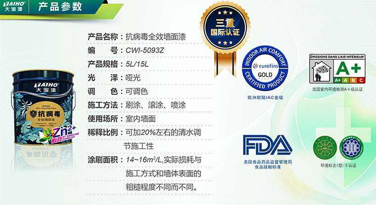 因應(yīng)日趨嚴(yán)峻的疫情,大寶抗病毒全效墻面漆的誕生猶如一場(chǎng)及時(shí)雨,給予我們實(shí)質(zhì)上的安全感,全方位締造健康安全的居室空間。