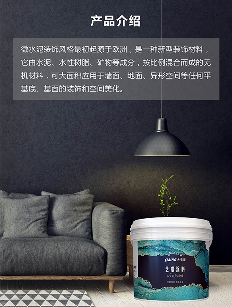 當家居設計遇上微水泥藝術漆,打造渾然一體的高級感,微水泥以其細膩如水泥的質感紋理,漫反射突顯質感,特別適合用來營造空間的高級氛圍,簡直是裝修中的buff,如果你厭倦了傳統涂料的單調和乏味,不妨試試大寶微水泥藝術涂料吧!