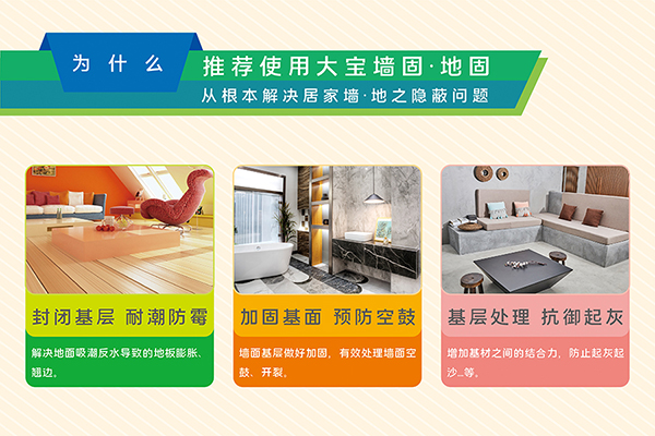 大寶全效防潮地面加固劑是一種高滲透性加固材料,能有效提升地面的光澤度,使地面更加光滑平整,起到美化整體環境的作用。