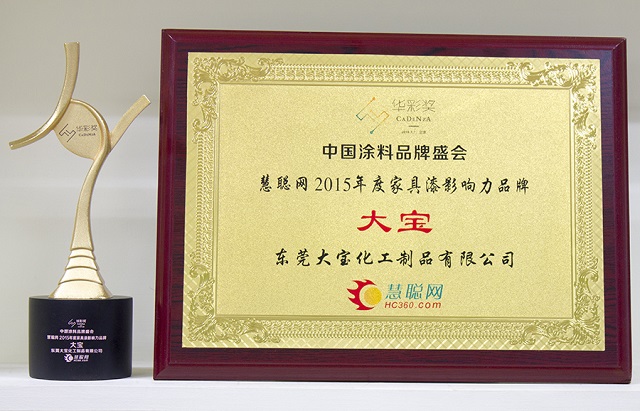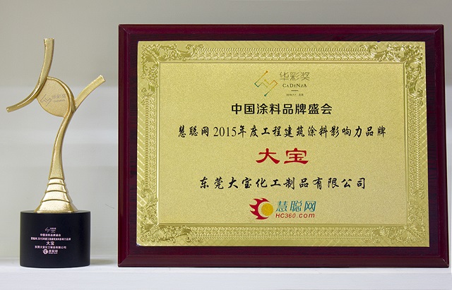 歷經數月激烈的票選角逐,作為綠色涂料首選品牌的大寶漆憑借著過硬的產品質量及雄厚的銷售實力,從眾多涂料生產品牌中脫穎而出,一舉獲得了“2015年度工程涂料影響力品牌”、“2015年度家具漆影響力品牌”、“2015年度墻面漆影響力民族品牌”三項殊榮。