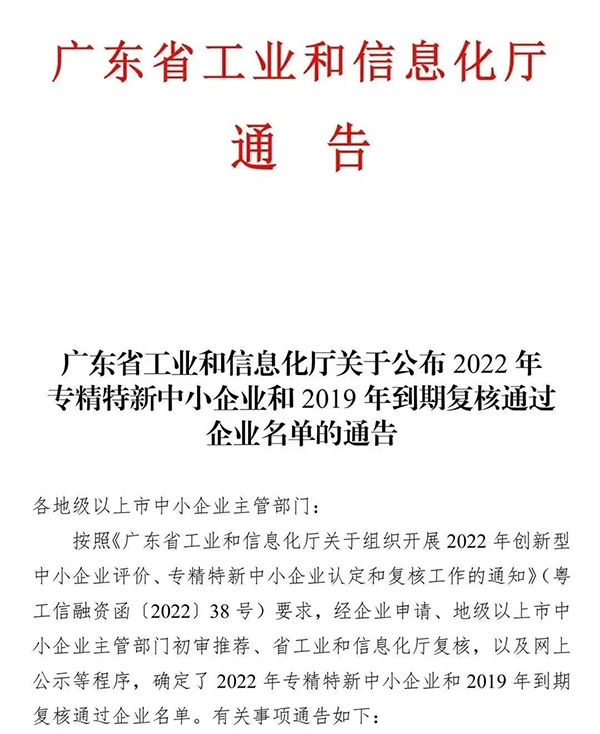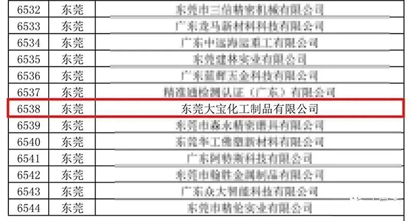 近日,廣東省工業(yè)和信息化廳公布了《關(guān)于公布2022年專精特新中小企業(yè)和2019年到期復核通過企業(yè)名單的通知》,東莞大寶化工制品有限公司順利通過各級部門的審核,被認定為2022年度廣東省“專精特新”中小企業(yè)。