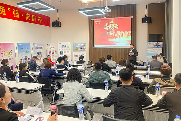 3月9號,“黑龍江大寶分銷商會議”在哈爾濱市舉行,來自黑龍江省的分銷商齊聚哈爾濱。大寶裝修漆銷售總監向與會經銷商介紹新產品并頒發2022年度優秀分銷商獎,在會議中進行交流、探究產品、經營經驗、施工方注意事項,為2023年發展提供動力支撐。