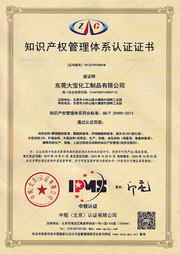 大寶漆不斷持續(xù)創(chuàng)新研發(fā),目前已經(jīng)獲得國(guó)家授權(quán)專(zhuān)利上百項(xiàng),申請(qǐng)已進(jìn)入國(guó)家知識(shí)產(chǎn)權(quán)局官審的發(fā)明專(zhuān)利57項(xiàng)、實(shí)用新型專(zhuān)利4項(xiàng)、外觀型專(zhuān)利2項(xiàng)。