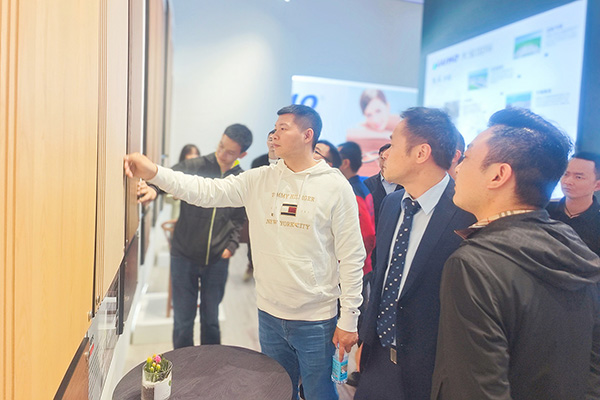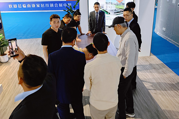 ▲南康區(qū)家具協(xié)會(huì)會(huì)長(zhǎng)參觀大寶漆展館