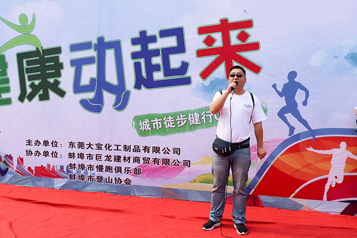 開幕式上,蚌埠慢跑俱樂部楊會長致開幕詞,他強(qiáng)調(diào)徒步和慢跑對于現(xiàn)代人們健康的重要性。大寶漆華東二區(qū)業(yè)務(wù)總監(jiān)謝重亮向參加徒步的健將們介紹了戶外運(yùn)動要注意的事項(xiàng)。接著,蚌埠巨龍建材張俊良總經(jīng)理發(fā)言。他表示,大寶漆作為綠色環(huán)保涂料的制造商和涂裝解決方案的供應(yīng)商,長期以來,秉持“堅(jiān)持品質(zhì),永續(xù)環(huán)保”的理念,為廣大消費(fèi)者提供綠色環(huán)保的涂料產(chǎn)品。此次大寶漆舉行蚌埠徒步健身活動,是希望為蚌埠市民帶來積極健康的生活方式,引導(dǎo)更多人參與運(yùn)動,提高身體素質(zhì),與大家攜手共創(chuàng)健康的生活方式,共建綠色家園!最后他宣布2018年蚌埠大寶漆健康徒步行活動正式開始。