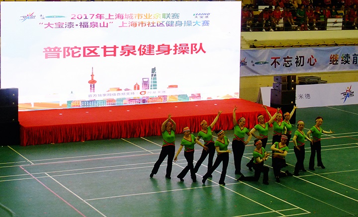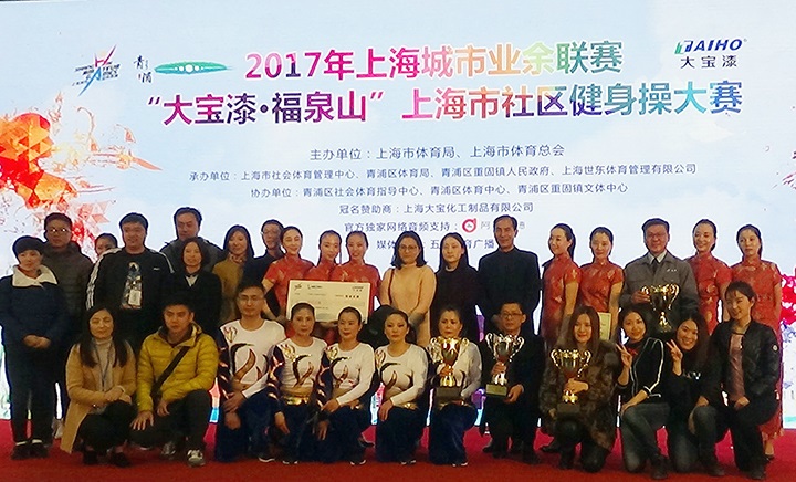 11月25日下午,由上海市社會體育管理中心、青浦區(qū)體育局、重固鎮(zhèn)人民政府主辦,上海大寶化工制品有限公司獨(dú)家冠名的大型市民健身操大賽——2017年“大寶漆·福泉山”杯在青浦體育館隆重舉行,來自上海市16個區(qū)22支隊(duì)伍共300多名選手匯聚一堂,在這一年一度,代表上海市社區(qū)健身操最高水平的大賽上,跳出活力,舞動申城。
