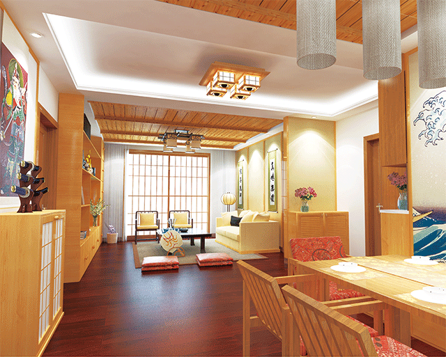 日式風(fēng)格又稱和風(fēng)、和氏,它繼承了中國古代佛教寺廟、傳統(tǒng)神社以及中國唐代建筑的特點。現(xiàn)代日式設(shè)計風(fēng)格直接受日本和氏建筑影響,講究空間的流動與分隔,其室內(nèi)設(shè)計色彩多偏重于原木色以及竹、藤、麻等天然材料顏色,以營造靜謐、禪意的居室環(huán)境。